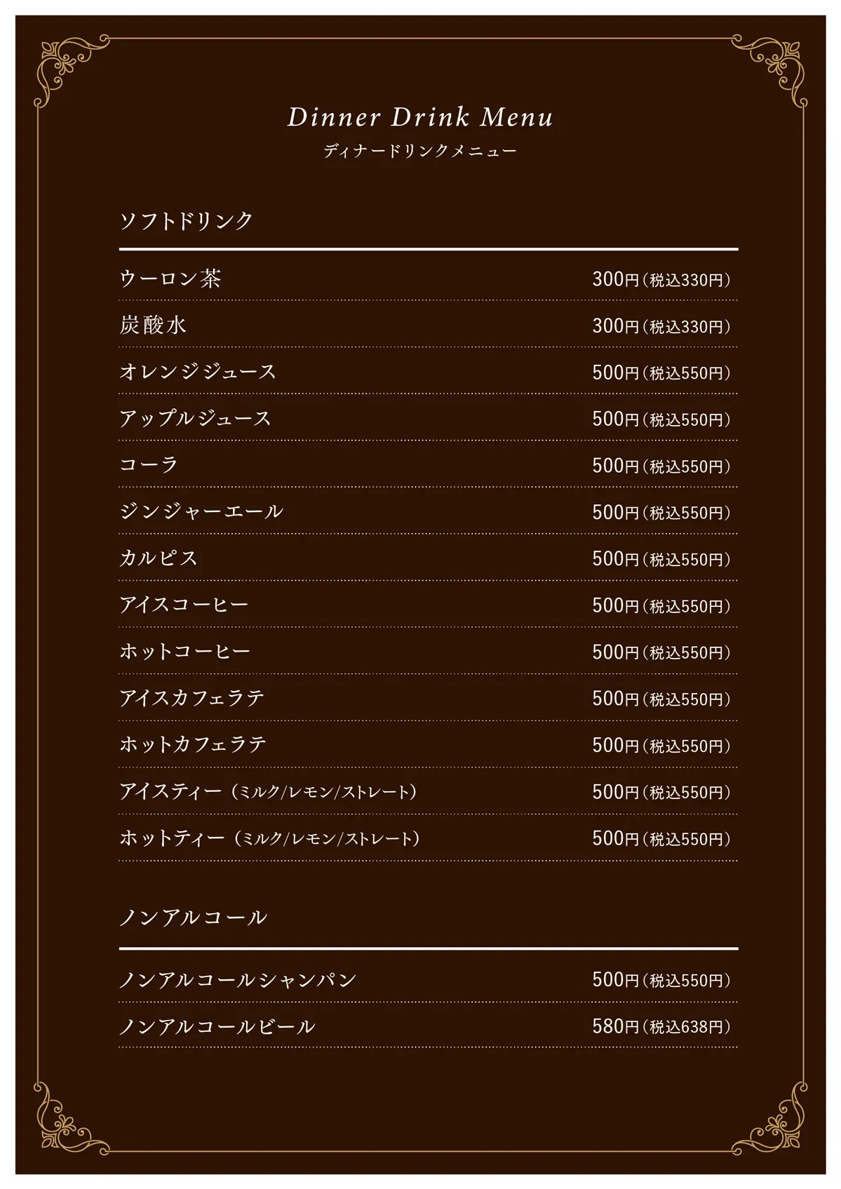 ディナードリンクメニュー