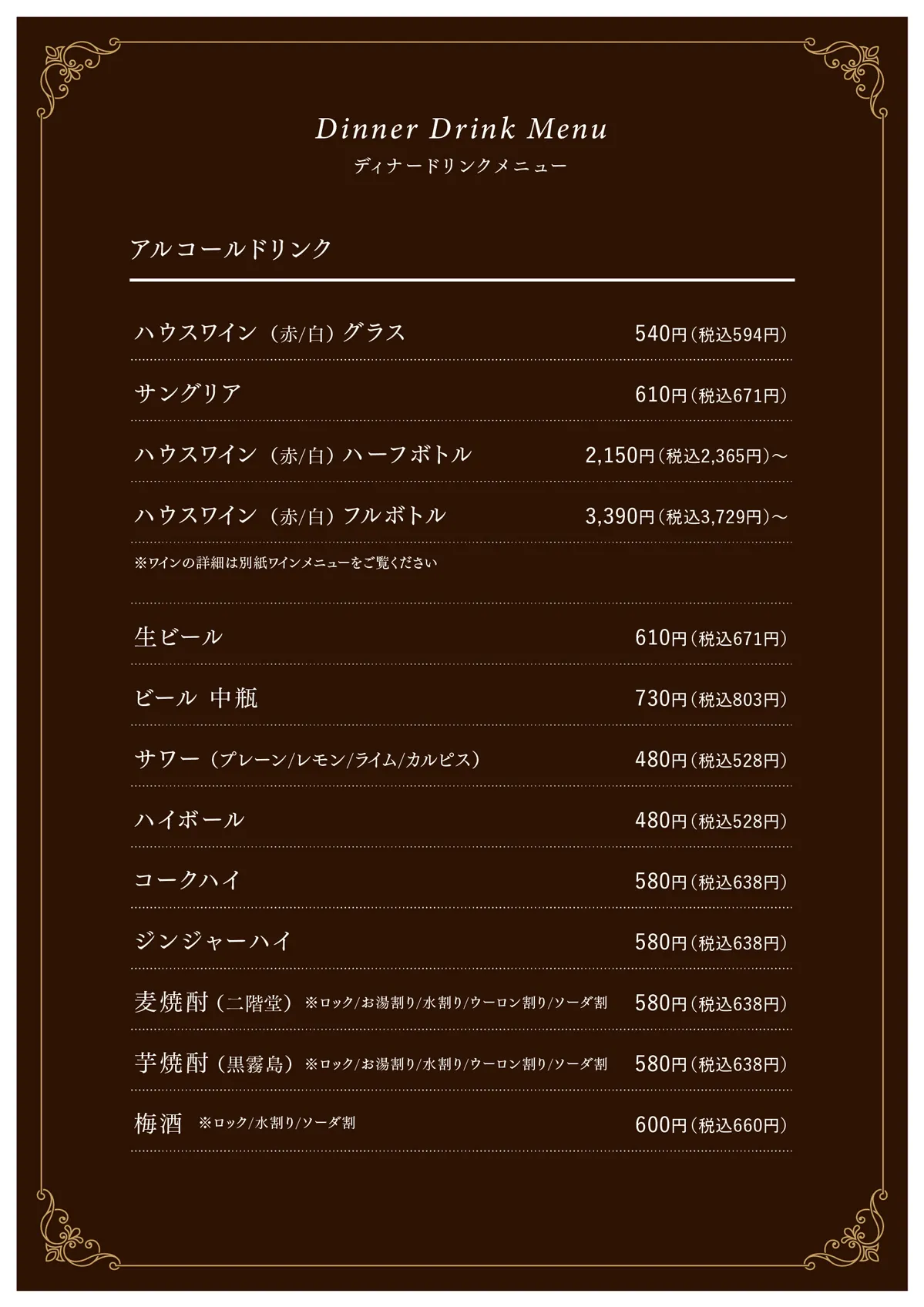 Dinner Drink MENU