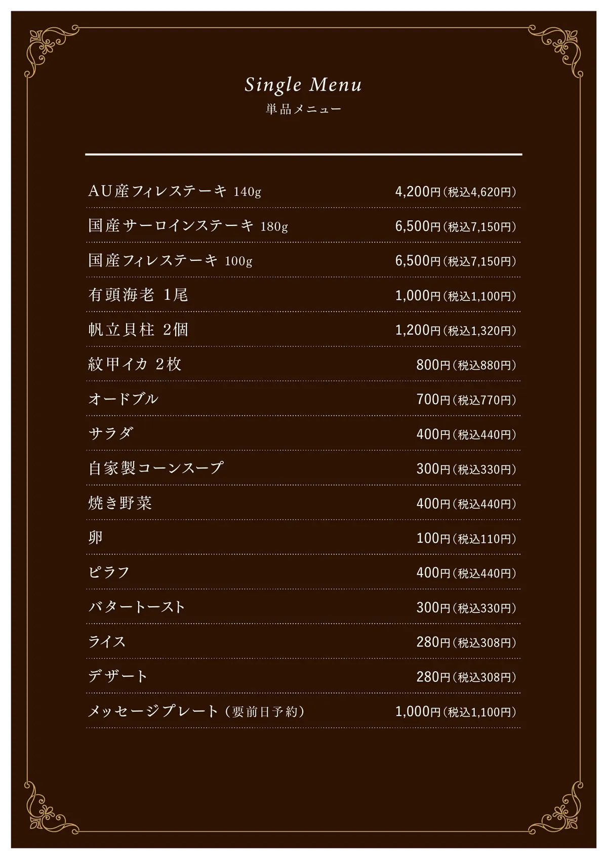 ディナーメニュー