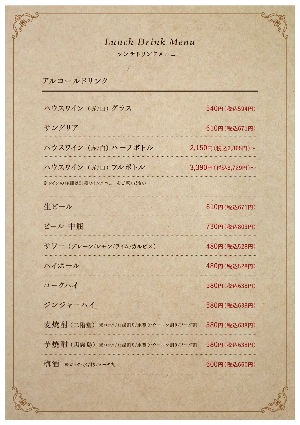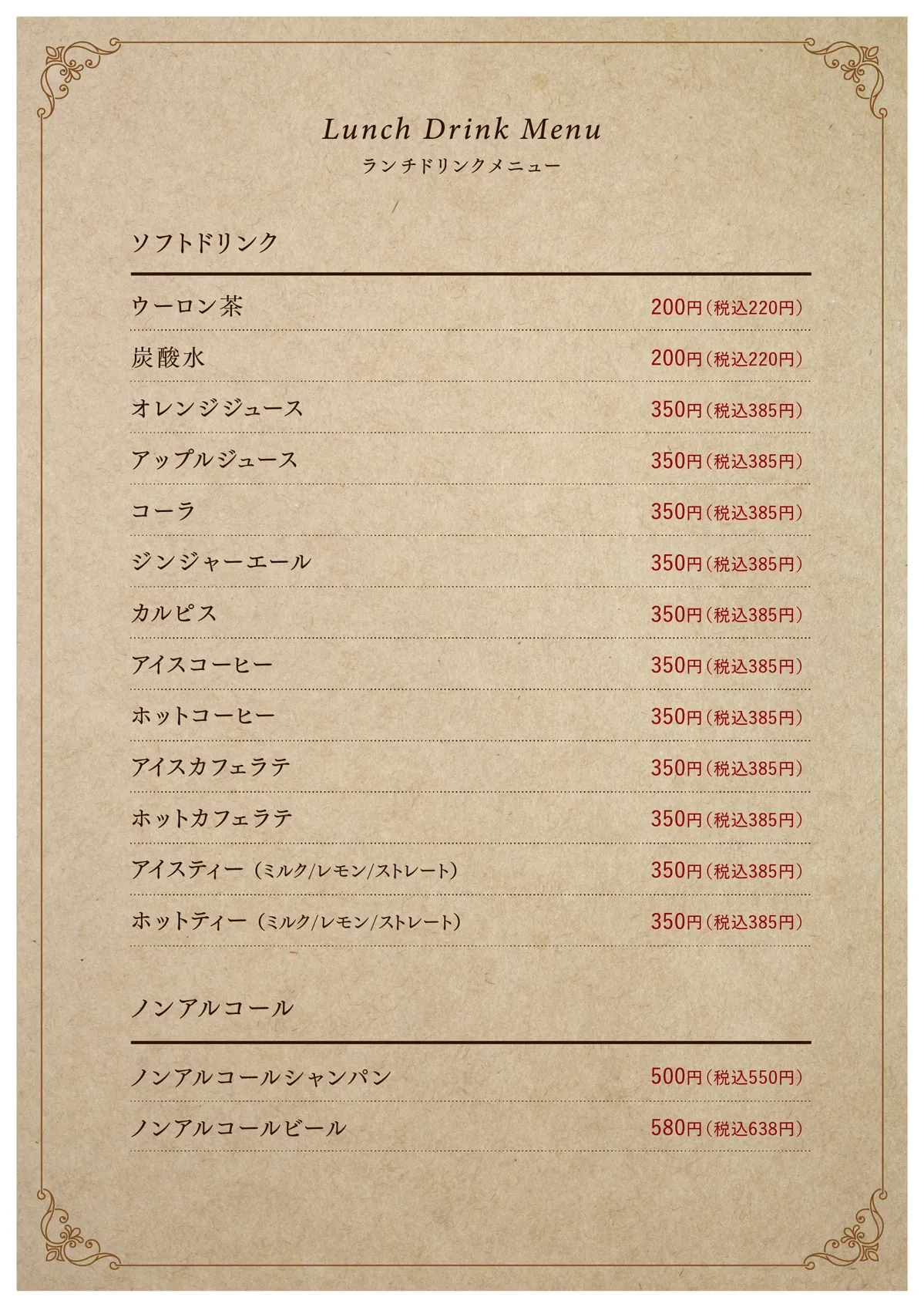 Lunch Drink MENU