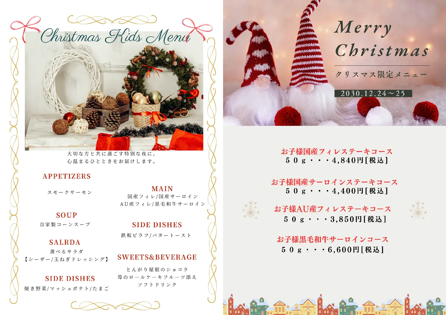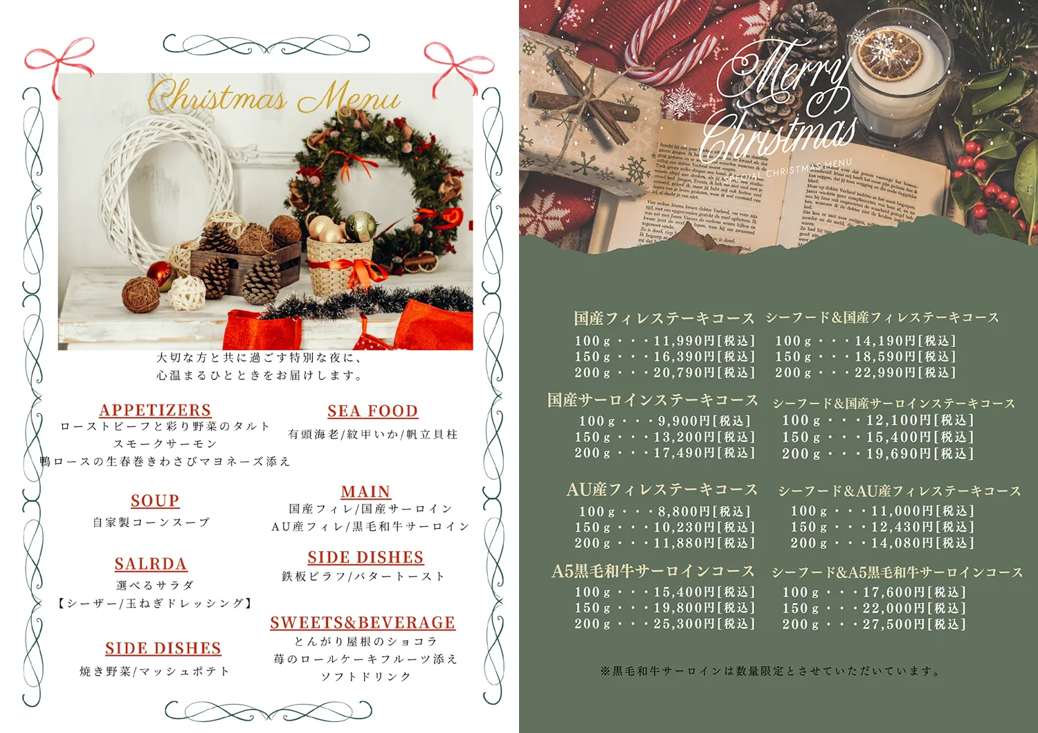 2025年12月24日(水)、25日(木)の2日間、クリスマス限定メニューをご用意いたしました。